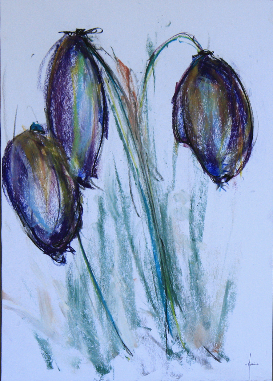 - Matières : fusain et peinture au pastel