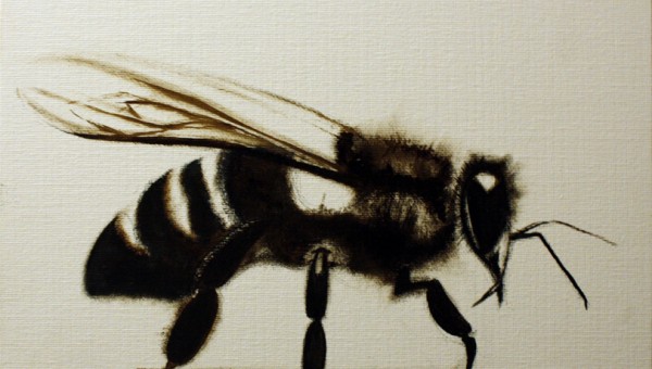 Titre : « L’abeille » Format : 30 x 30 cm Support : carton toilé Matières : peinture à l’huile, encre de chine Détails :