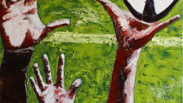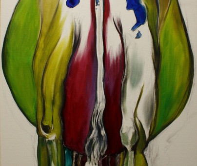 Titre : « L’arrière » Format : 100 x 50 cm Support : toile sur châssis Matières : peinture à l’huile, crayon Détails :