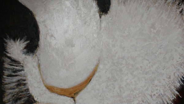 Titre : « L’oiseau de nuit » Format : 30 x 100 cm Support : toile sur châssis Matières : peinture à l’huile, crayon Détails :