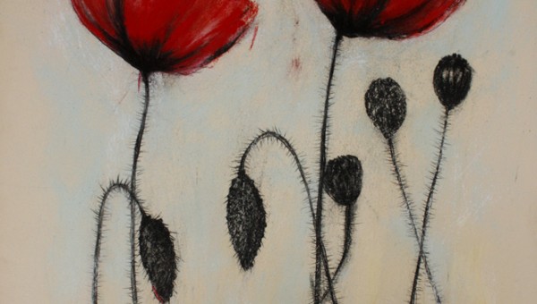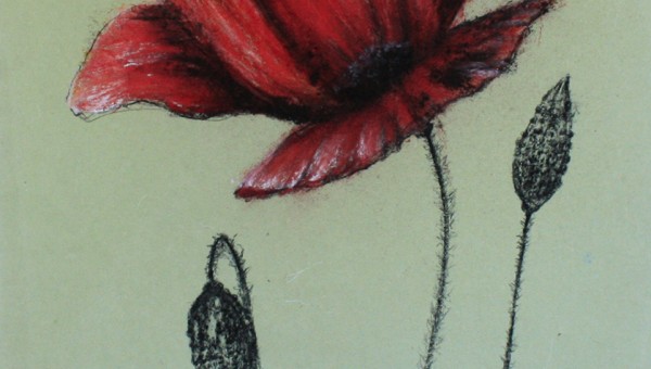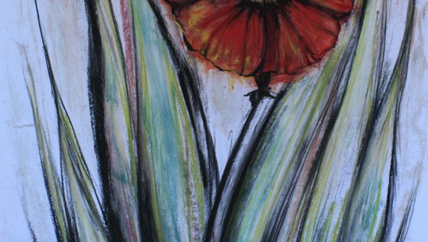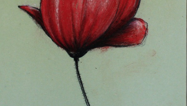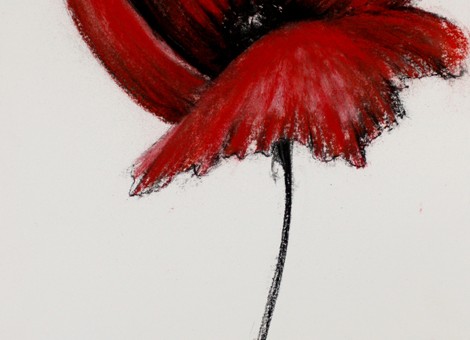 Titre : « Coquelicot #02 » Format : 56,5 x 38 cm Support : papier Matières : fusain et peinture au pastel