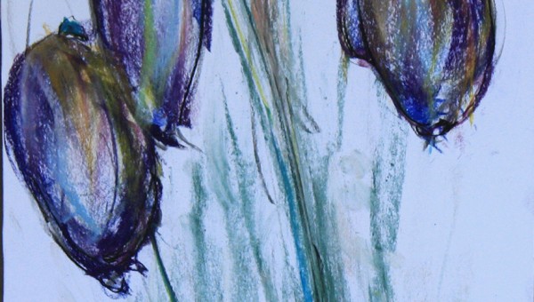 Titre : « Fleurs violettes » Format : 50 x 35 cm Support : papier Matières : fusain et peinture au pastel