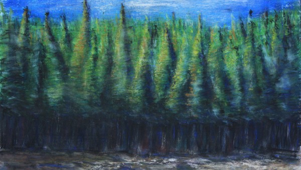 Titre : « La forêt » Format : 70 x 100 cm Support : papier Matières : fusain et peinture au pastel