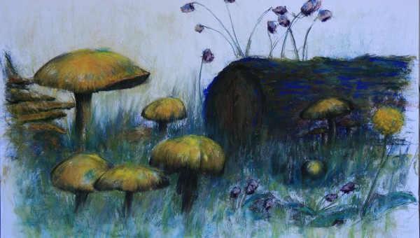 Titre : « Purple Mushroom » Format : 38 x 47 cm Support : papier Matière : peinture au pastel
