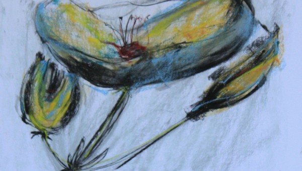 Titre : « Wild flower » Format : 35 x 50 cm Support : papier Matières : fusain et peinture au pastel