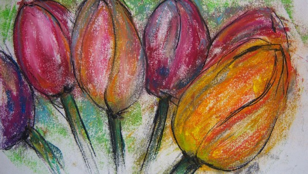 Titre : « Tulipes » Format : 21 x 29,7 cm Support : papier Matières : peinture au pastel et fusain