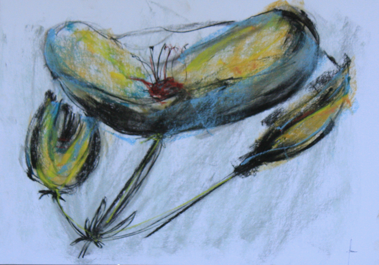 - Matières : fusain et peinture au pastel